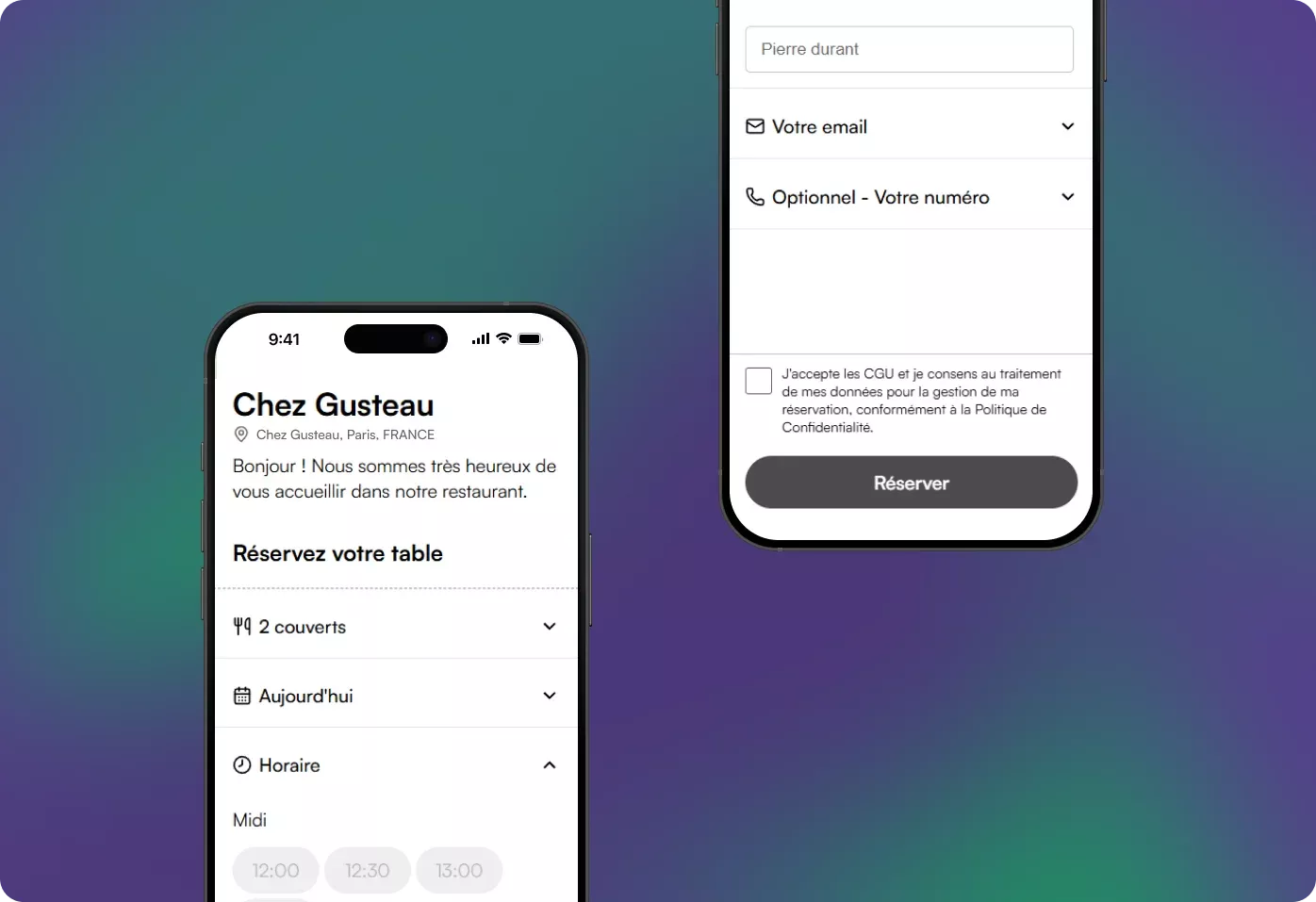 Yummeezy, c’est un module de réservation multilingue affiché sur votre site ou accessible depuis vos réseaux sociaux, et optimisé pour une réservation simple et rapide. Mais aussi, un espace restaurateur vous permettant de consulter et gérer vos réservations, et surtout, de vous apporter de la flexibilité grâce aux paramètres.
