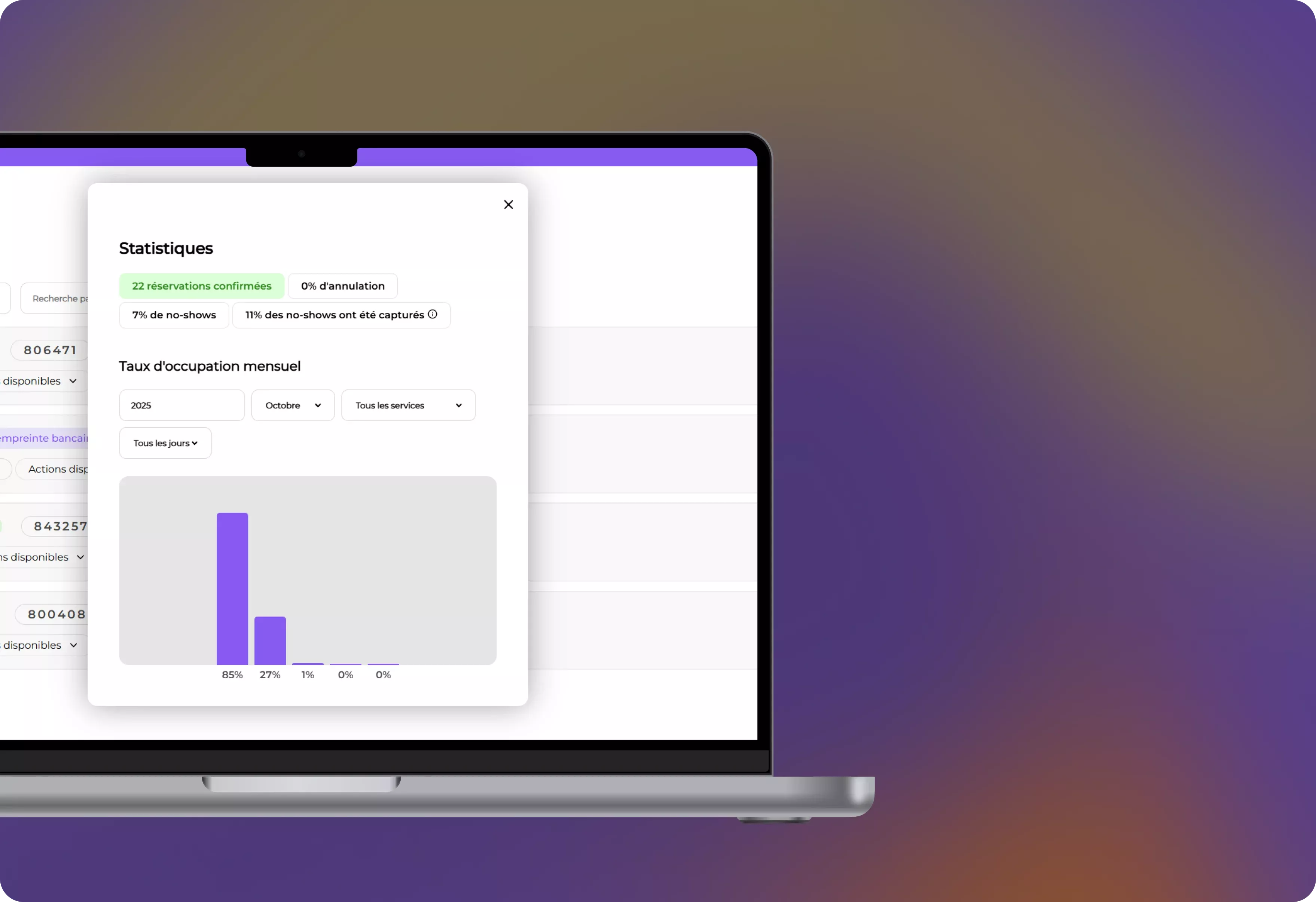 Utilisez les statistiques fournies par Yummeezy pour vous adapter. Visualisez en un coup d'oeil le taux d'occupation habituel de votre restaurant sur la période de votre choix.